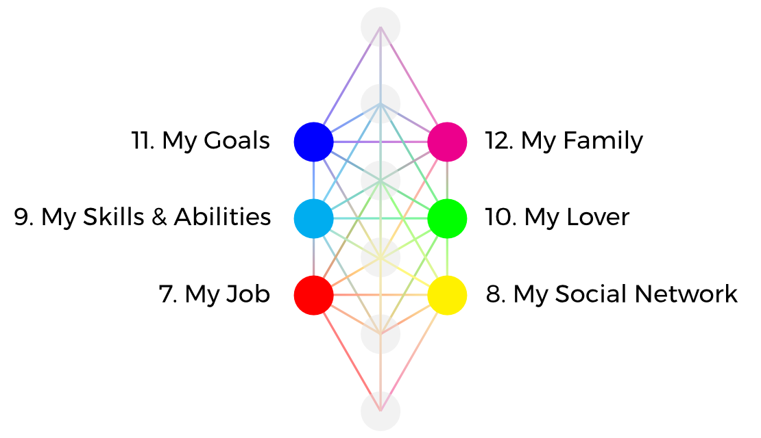 Our lives are complex. We have different areas of our life and each of these areas of our life interrelate with each other. The Tree of Love contains a model for us that shows the areas of our life. I will do my best to break that down here in different ways. The model below is the adult model of life. We have two worlds, very distinct from each other.