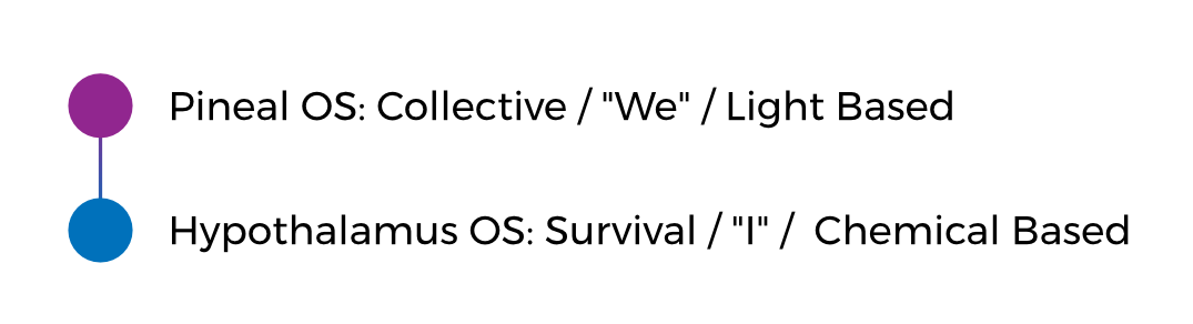 These operating systems (OS), the Pineal OS (POS) and the Hypothalamus OS (HOS) are major regions of the brain that contain the rules for how our body should interact with our life. The unconscious decisions we make dictate which OS we will use for our experience throughout the day. We can fluctuate in and out of these operating systems many times in a day.